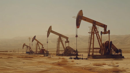 State-of-the-art high-capacity oil pumps operate in the lifeless desert, ensuring the extraction of valuable raw materials