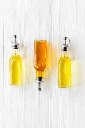 Different kind of cooking oil - sunflower olive and sesame oil with seeds