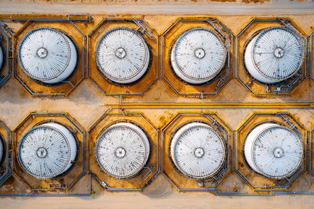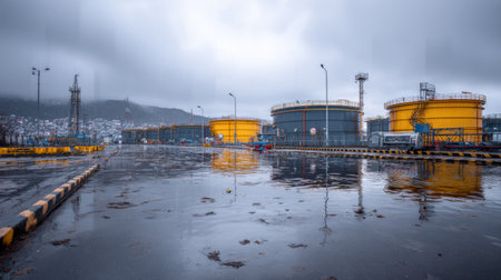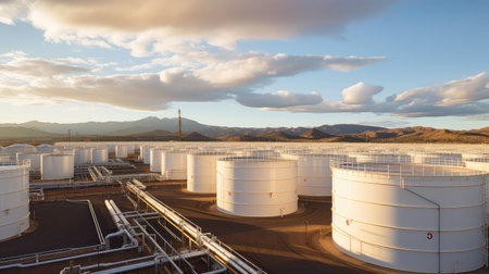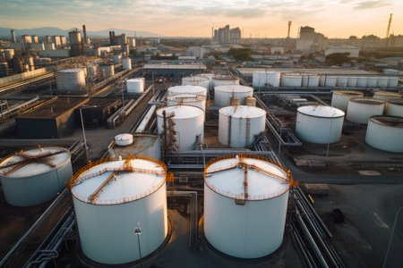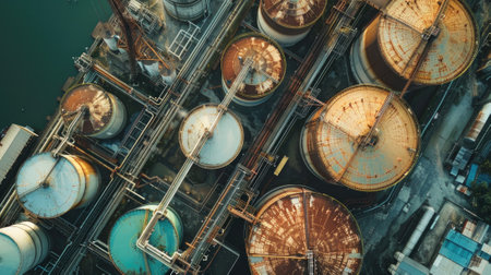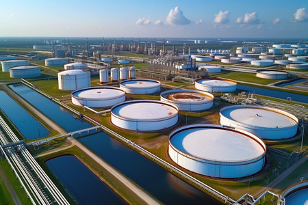 An aerial view of an oil storage facility. Generative AI.