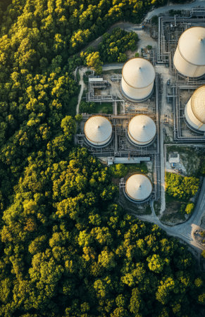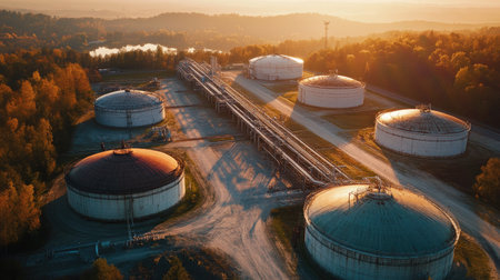 Oil storage facility operations rural area aerial view industrial environment energy sector