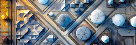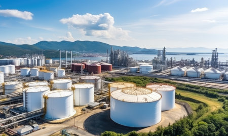 An aerial view of an oil storage facility. Generative AI.