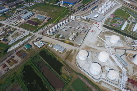 Oil storage facility operations rural area aerial view industrial environment energy sector