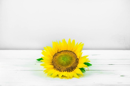 Sunflower flower on a light background. Summer mood. Rest outside the city. Production of oil from plants