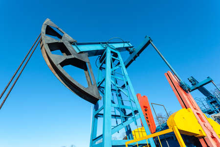 Oil pumpjack, industrial equipment. Rocking machines for power genertion. Extraction of oil.