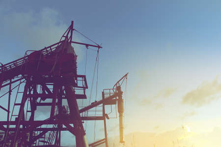 Oil pump oil rig energy industrial machine for petroleum in the sunset background for design.