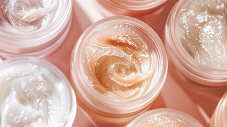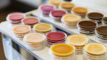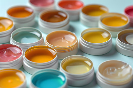 A stunning display of colorful creams in clear containers showcases a vibrant palette for beauty enthusiasts, highlighting various shades ideal for skincare and makeup applications.
