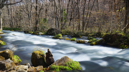 Oirase stream in spring. Aomori prefecture,Japan.