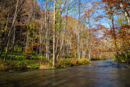 The Oirase Gorge beautiful river druing the autumn season, Japan