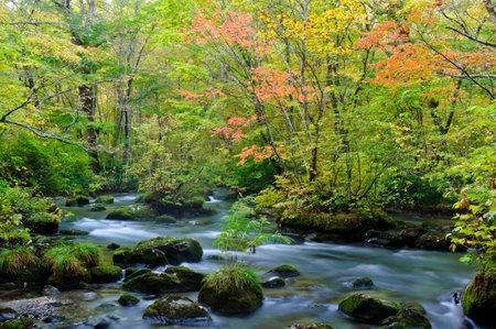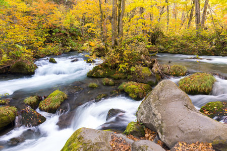 Oirase Stream in autumn at Towada Hachimantai National Park in Aomori, ,Tohoku, Japan