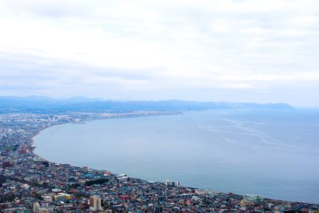 cityscape view from Mt. Hakodate at evening, Hokkaido, Japan