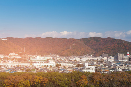 Residence downtown Kyoto city in mountain during autumn season Japan
