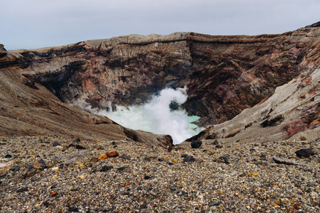 Steaming crater of the Mount Aso, Kyushu, Japan