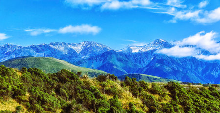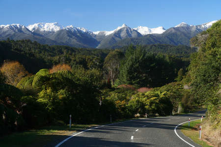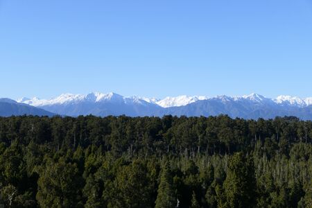 Magnificent panorama of New Zealand? S Southern Alps between Greymouth and Franz Josef glacier village