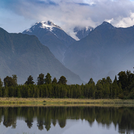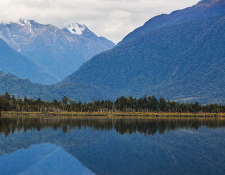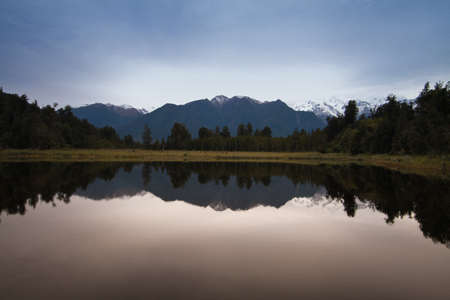Beautiful reflections of Southern Alps at Lake Matheson, South Island, New Zealand