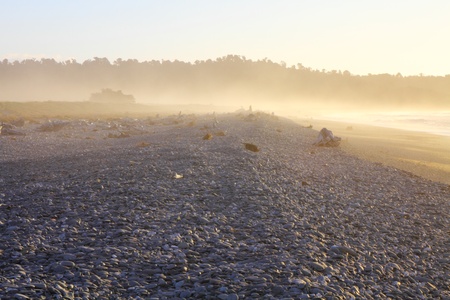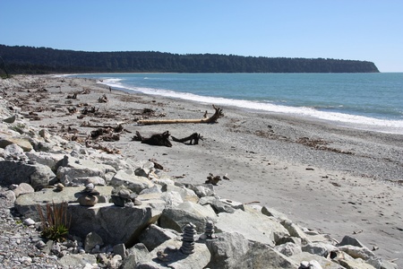 New Zealand - West Coast. Driftwood debris after storm at Bruce Bay beach.