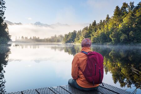 Hiking and tramping in New Zealand. Travel and adventure concept
