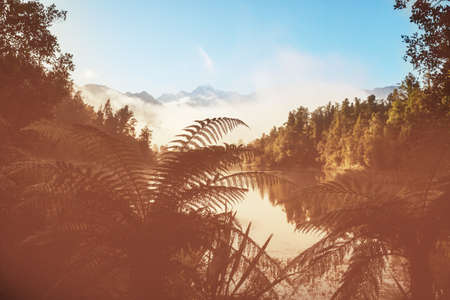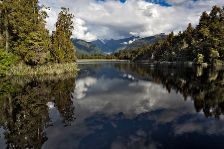 Lake Matheson of New zealand in summer - the reflection in the lake looked like the mirror