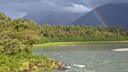 Rainbow over Arawhata River, West Coast, New Zealand