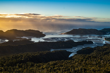 Golden hours sunset above the knuckle hills in new zealand