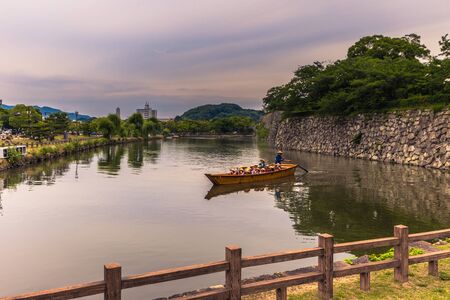 Himeji - June 02, 2019: Boat tour near the iconic Himeji Castle in the region of Kansai, Japan
