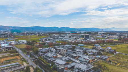 View of small village in japan with beautiful blue sky background