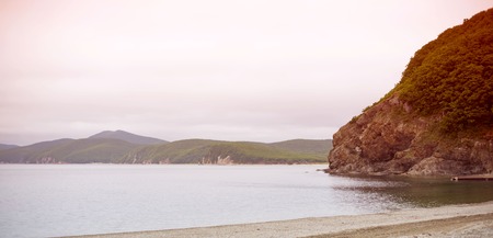 High resolution image. Beach of sea of Japan in Russia. Coastal fading.