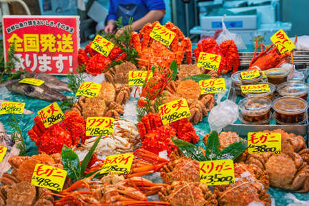 Tokyo, Japan - October 28, 2017 : fresh seafood at market in Tokyo Japan with many type of crab fish and lobster