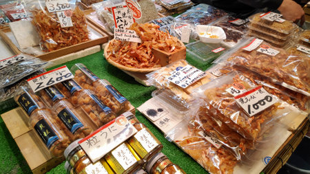 TOKYO , JAPAN - May 2 ,2017 variety of fresh seafood is available at Tsukiji Market in Japan.
