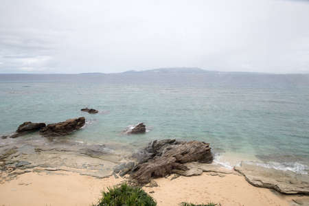 Irabu island, Japan - June 28, 2019: Toguchi beach or Toguchi-no-hama in Irabu island, Okinawa