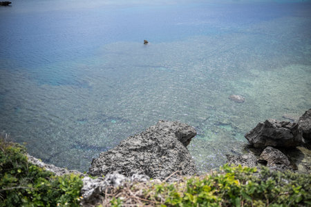 A spectacular view from the observatory overlooking the cliffs and blue sea of Irabu Island, a remote island in Miyako Island, Okinawa Prefecture.