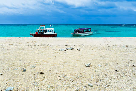 The boat sails in the beautiful sea, taken in Okinawa.