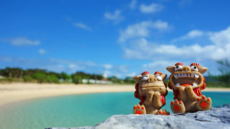 Sea and Shisa Okinawa Prefecture Miyakojima Kurima Bridge Superb view