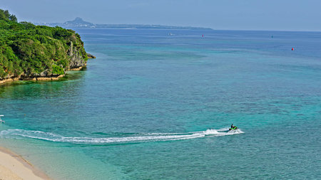 okinawa beach in japan with blue sea and coral reef in clear day. High quality photo