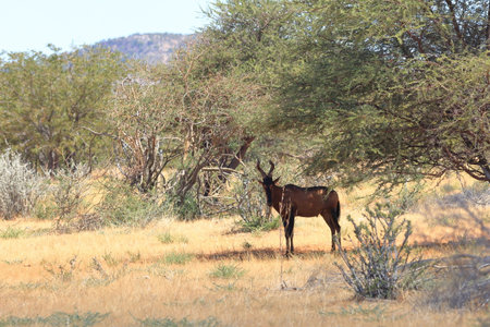 Group of red hardebeest. Seen and shot on self drive safari tour through several natural parks at namibia, africa.