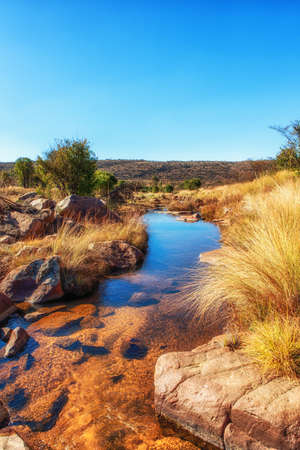 A small river winds through the savannah in South Africa