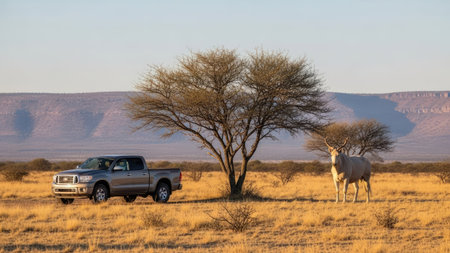 A traveler on a safari jeep, observing wildlife in the African savanna, capturing the thrill of an adventurous expedition.