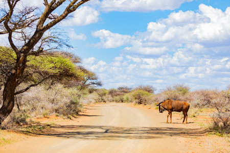 View of wildlife animal Wildebeest in game reserve on safari in South Africa