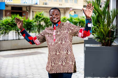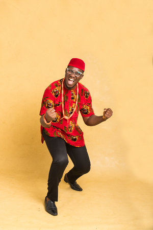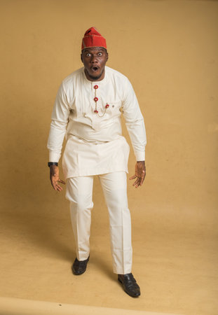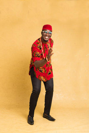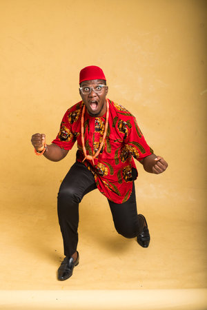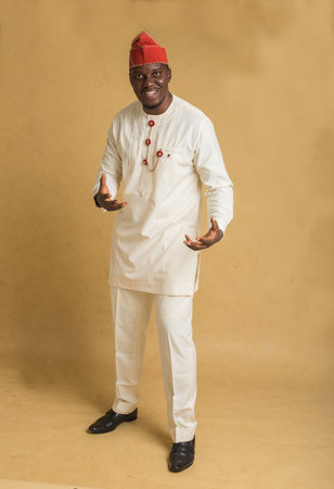 Igbo Traditionally Dressed Business Man Standing Dancing with Hand forward