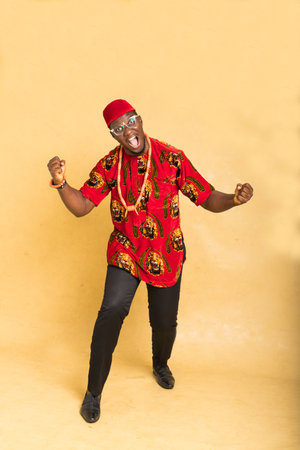 Igbo Traditionally Dressed Business Man in Glasses Winning Stance