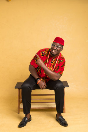 Igbo Traditionally Dressed Business Man Sitting Down and Looking Handsome