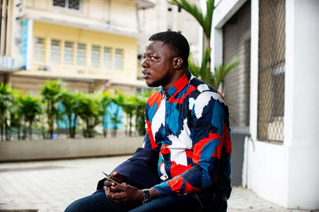 Yoruba Culturally Dressed Business Man Sitting with Phone in Hand Excited