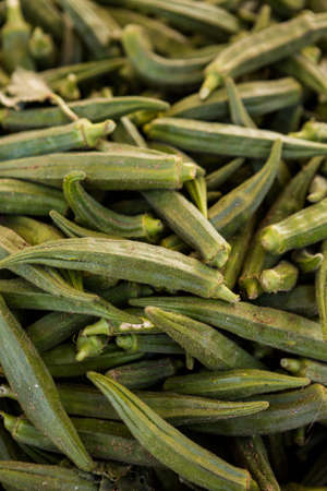 sale of fresh okra in the market, gumbo, vegetable