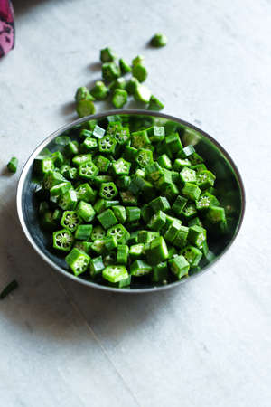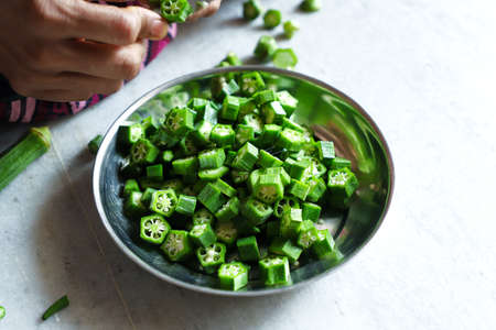 Fresh Green Cut Okra in Plate