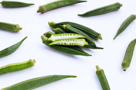 Fresh okra on white background.
