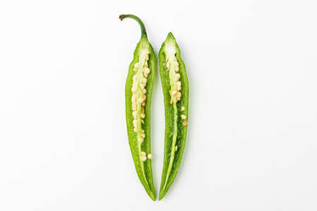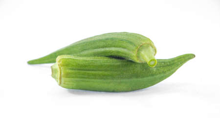 Fresh okra isolated on white background. Organic food. Close up.