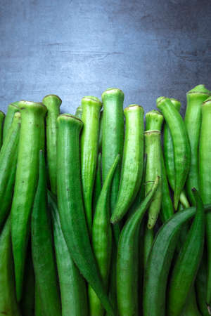 Fresh green okra, Organic vegetable, Asian food ingredients