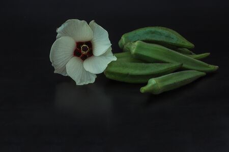 okra and its flower in a black background