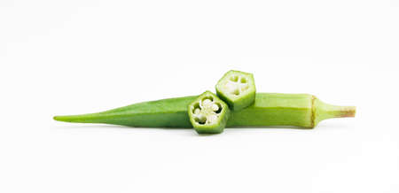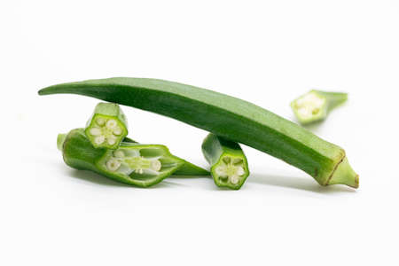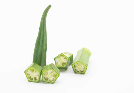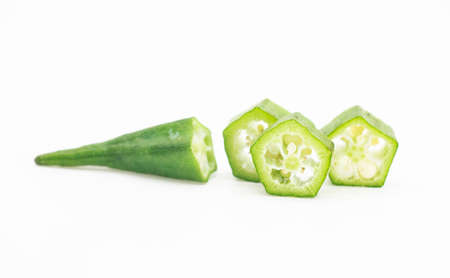 fresh okra or lady finger or Bhindi isolate on white background, orka slices