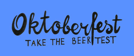 Munich Beer Festival Oktoberfest handwritten text with line art illustration. Poster, banner, website, printing for beer party.
