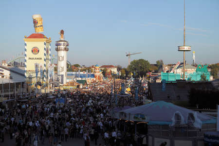 Munich, Germany - September 28: Aerial view of the crowd in the festival - Octoberfest